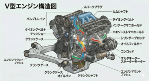 全長が長くなる(多気筒化の限界): 気筒数を増やすと、エンジン全体の長さが単純に伸びてしまいます。直列6気筒以上になると、フロントオーバーハングが長くなったり、クラッシャブルゾーンが制限されたりと、パッケージングが非常に難しくなります。