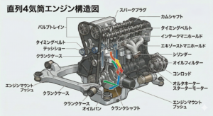 全長が長くなる(多気筒化の限界): 気筒数を増やすと、エンジン全体の長さが単純に伸びてしまいます。V型6気筒以上になると、フロントオーバーハングが長くなったり、クラッシャブルゾーンが制限されたりと、パッケージングが非常に難しくなります。