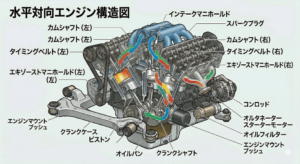 振動の問題(V型4気筒以下): 4気筒以下の場合、二次振動(ピストンの上下運動の速度差による振動)が理論上発生します。これを抑えるために「バランサーシャフト」が必要となり、コストや重量が増加する場合があります。